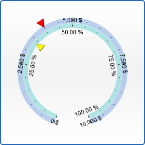 Knob pointer is like a needle pointer but it has a cap of larger radius that imitates a gear and may use a custom marker as a needle. With the help of knob pointer you can imitate a massive gear or a volume control.