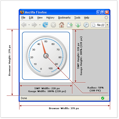 We have tried to create a system that allows you to create a gauge of any size without any hassles and hurdles, please study Positioning tutorial to understand relative coordinates if you haven't already done that.