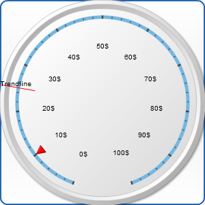 Trendlines has parameters similar to a simple tickmark. It has a size, value, padding and align node. Their meaning is obvious. Value defines the position of trendline on your axis and size - its height. Also you can adjust the position of your trendline with the help of align and padding nodes, which settings are similar to their settings in other nodes. Trendline also has some subnodes: label and line. Their attributes you can find in the Visual appearance chapter of AnyChart documentation. Here is a simple example of trendline usage: