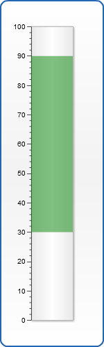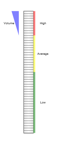 In the sample below we will show a sample Volume gauge, using color ranges to show different sound levels and one range to show scale increase direction.