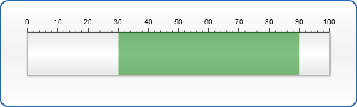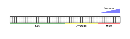 In the sample below we will show a sample Volume gauge, using color ranges to show different sound levels and one range to show scale increase direction.