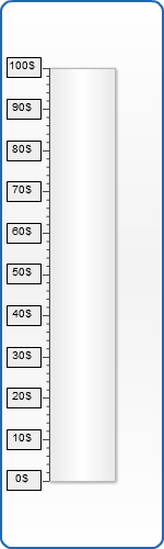 In this sample we will use align and padding attributes. Align attribute has three states: "Inside", "Outside" and "Center". In case of Vertical Linear Gauges "Inside" means position of labels to the left from the scale, "Center" - inside the scale and "Outside" - to the right from the scale. Padding attribute is set in percents and defines how far from the scale we move the text. Padding can be represented in positive or negative values, which affects the direction of text's movement. For "Center" and "Outside" states of align attribute positive values move the label to the right, and negative - to the left. For the "Inside" state positive - left, negative - right. Let's imagine we want to create a gauge with labels standing to the right from the scale and that some distance should separate them. We use the following settings: