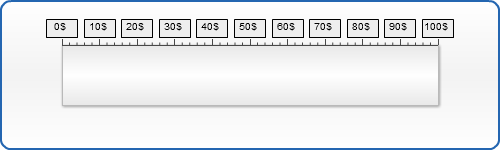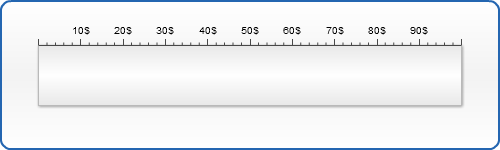 In this sample we will use align and padding attributes. Align attribute has three states: "Inside", "Outside" and "Center". In case of Horizontal Linear Gauges "Inside" means position of labels above the scale, "Center" - inside the scale and "Outside" - under the scale. Padding attribute is set in percents and defines how far from the scale we move the text. Padding can be represented in positive or negative values, which affects the direction of text's movement. For "Center" and "Outside" states of align attribute positive values move the label downwards, and negative - upwards. For the "Inside" state positive - upwards, negative - downwards. Let's imagine we want to create a gauge with labels standing under the scale and that some distance should separate them. We use the following settings: