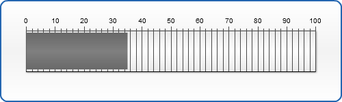 Please take a look at the sample below, this gauge has two axis with different position and sizes, their scale bars have the same width with the axes, tickmarks are placed in"Center" and labels are placed "Inside". Sometimes this technique can be used to create several gauges in one.