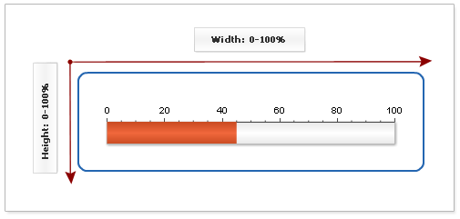 - Gauge is built in a coordinate system that starts in top left corner, where X goes from 0 to 100 left to right and Y goes from 0 to 100 top to bottom with no regard to actual pixel width and height.