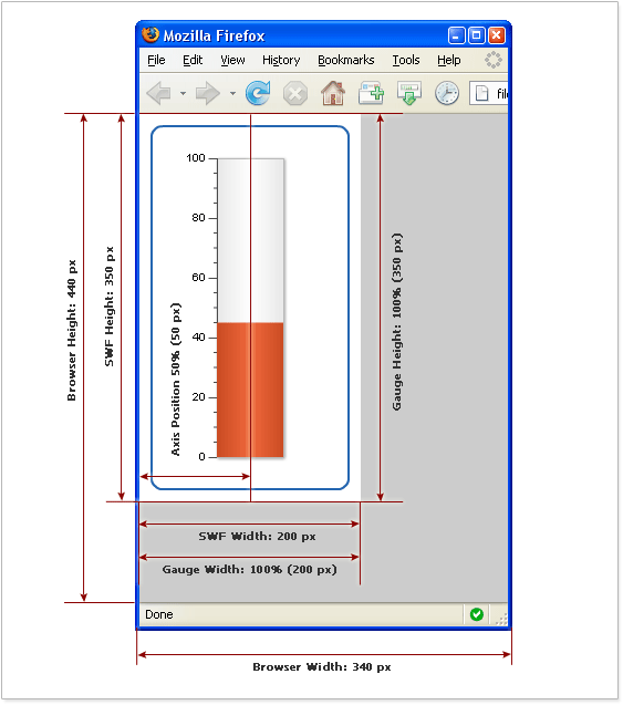 We have tried to create a system that allows you to create a gauge of any size without any hassles and hurdles, please study Positioning tutorial to understand relative coordinates if you haven't already done that.