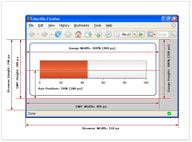 We have tried to create a system that allows you to create a gauge of any size without any hassles and hurdles, please study Positioning tutorial to understand relative coordinates if you haven't already done that.