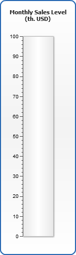 Now the current sales level is shown, as you can see from the syntax you can place several pointers on one gauge, they can be of a different shape and placed differently (this fact, by the way, allows to create the Bullet Graphs with AnyChart easily):