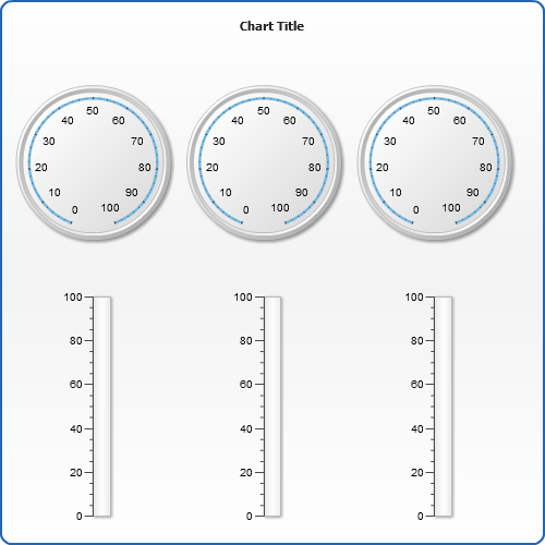 We will leave actual settings of these gauges aside, you can view them in live sample, if you'd like to. The only point of interest is the fact that we simply create several circular gauges at once.