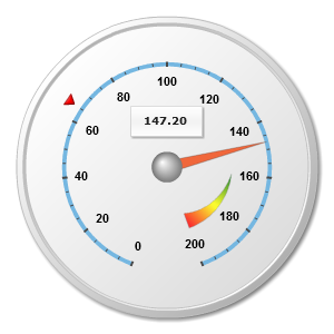 Circular Gauge looks like gauges on a car dashboard. It consists of radial scale, holding your data range, pointer, and might support different color ranges for classifying your data. Gauges can be not only circular, but also semi-circular, actually - AnyChart supports any angle ranges.