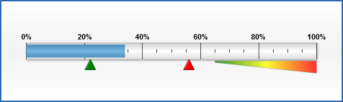 The Linear Gauge is a slider, or a wide line, that can hold much information and possess a variety features. It can be either vertical or horizontal, have any width of the line and use a single or multiple pointers to show your data value.
