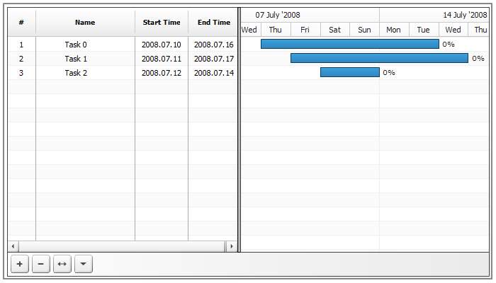 As it was already said above, there are 4 navigation buttons in AnyGantt: Zoom In, Zoom Out, Fit Button And Collapse-Expand Button. Zoom In/Zoom Out are responsible for zooming in and out the view of your chart on the plot/schedule. Fit button adjust the scale of the task bars/periods so that the fit the whole plot/schedule. And Collapse-Expand Button is used for fully collapsing and expanding all child tasks (resources) on the datagrid, leaving only parent tasks (resources) visible (to know more about parent and child tasks watch Task Hierarchy Tutorial).