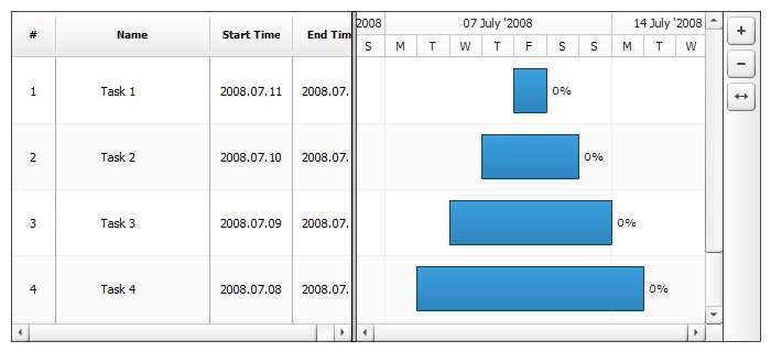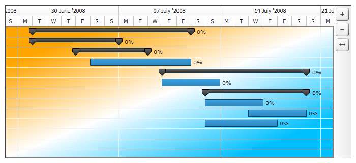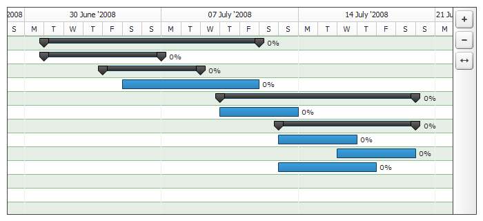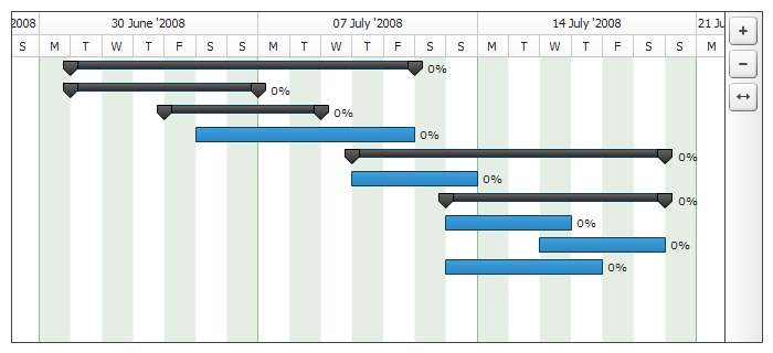 Timeline Plot - is an are where Gantt Chart itself is displayed. Besides tasks, periods and connectors this area can contain several decorative elements and several functional.