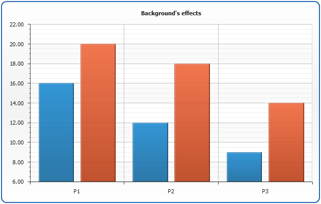 On the chart below typical solid border settings are applied to data plot background and typical gradient border is set to chart background. Application is made like that: