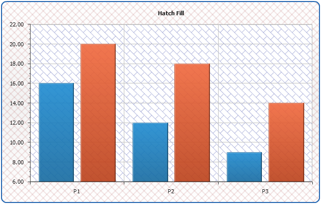 In the sample below chart and data plot backgrounds are filled with the different hatch fills: