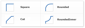 For "Rounded", "Cut" and "RoundedInner" types you can control not only a shape, but also a radius of "rounding" or "cutting" for all corners, or given corners.