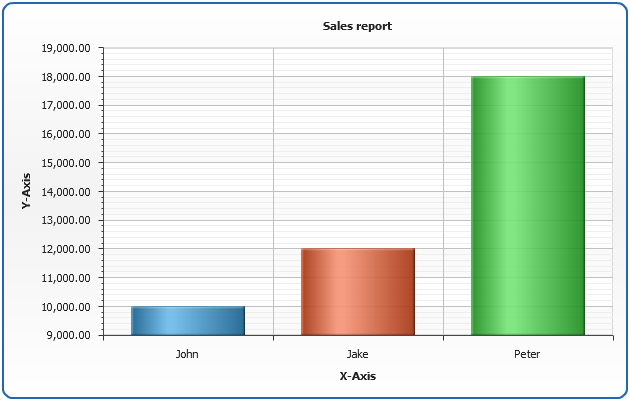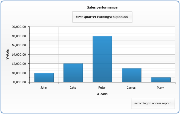 In this sample we will show how chart footer can be used as "Back" button for self-drilldown charts. Click on bars to see detailed report on each sales manager and in detailed report click on "Back to Sales Manager Report" button in the bottom right corner of line chart to load initial chart.