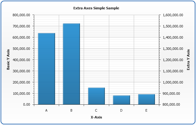 In the a sample below we will add one extra axis and set value ranges and titles for both basic Y axis and extra Y axis: