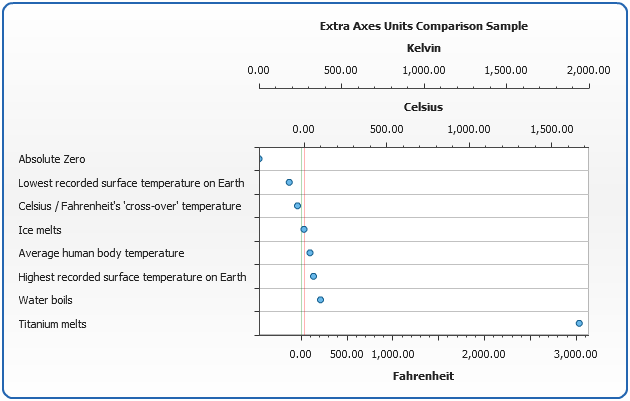 We defined three axes and set absolute zero as a minimum value, and Titanium melting temperature as a maximum value. We will create one series of a "Marker" type and bind it to Kelvin scale: