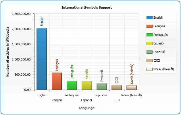 Only few words (and a sample) about using International Symbols in AnyChart - AnyChart supports a total Internationalization.