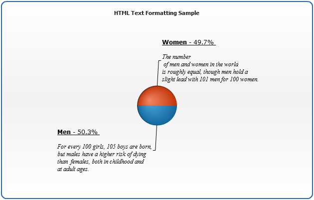 The sample Pie chart below demonstrates all available tags in slice labels formatting: