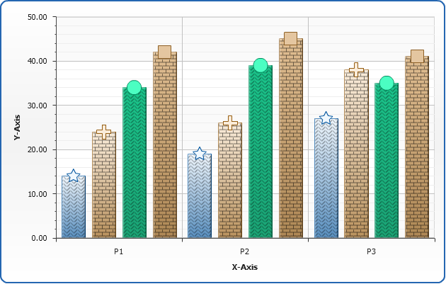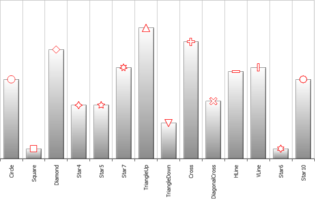 Predefined marker palette includes all possible hatch fill types and named "Default", on the sample below you can see the result of its application to the single-series chart: