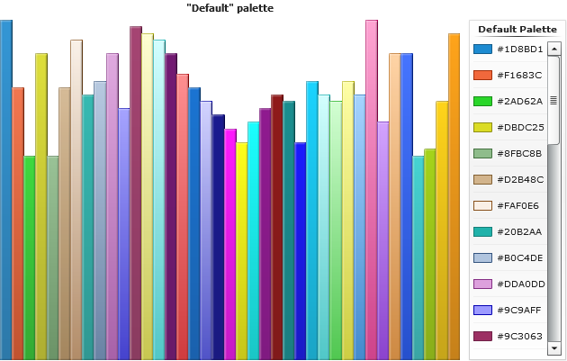 And here is a sample of column chart with 40 elements that are colored using default palette: