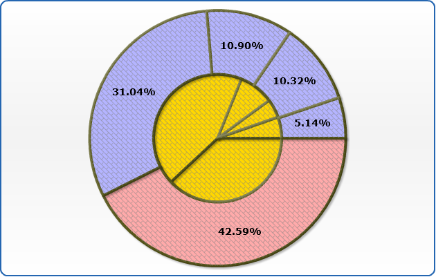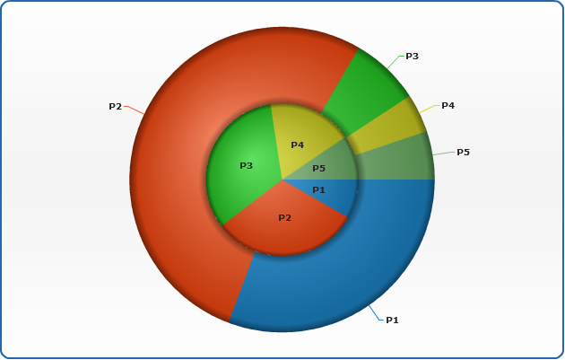 Depending on data model and the visualization purpose the pie chart may contain single series or multi series, they can also be displayed in 3D Style. Pie and doughnut charts can not be combined with any other charts, so they have their own plot_type="Pie" and plot_type="Doughnut", so if one of this plot types is set - all series in a chart will be plotted as pies or doughnuts. If only one series is supplied - a chart will be single-series, several series supplied - chart will be multi-series.