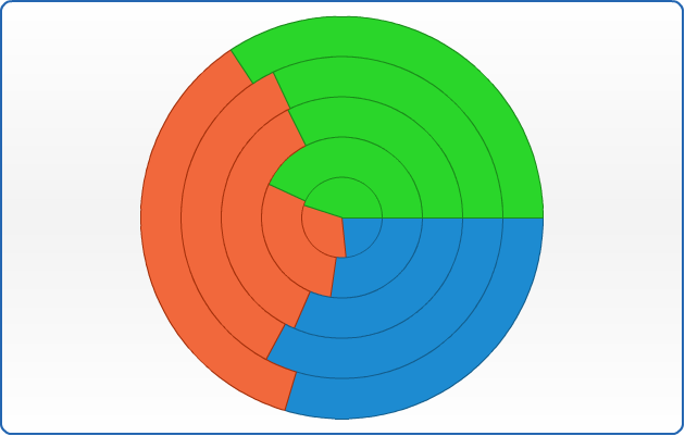 And here is the same data as above, displayed as a Multi-Series Doughnut chart: