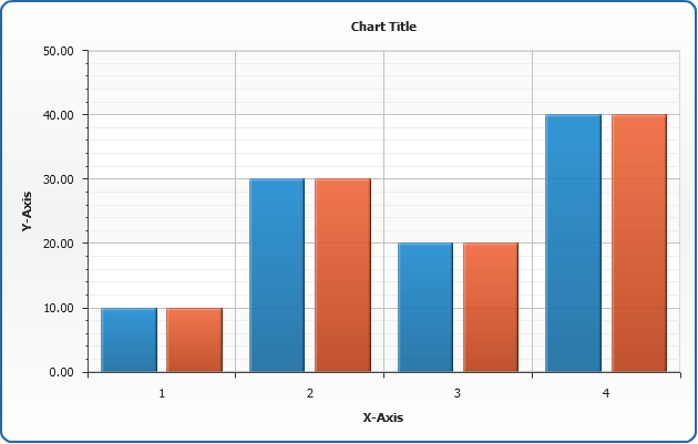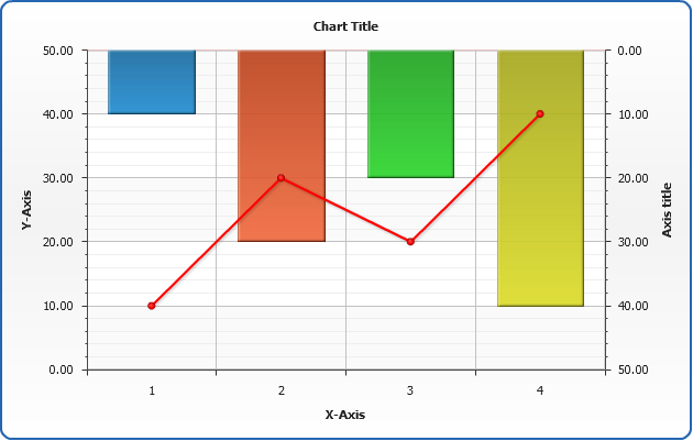 In the sample below chart contain two series: Test1 and Test2, by default they are colored in different colors from the palette and attached to main y axis: