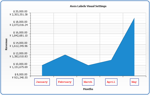 You can tune visual appearance of axes labels according to your chart design. Label visual settings consist of background settings (which include margins and border), font settings and effects.