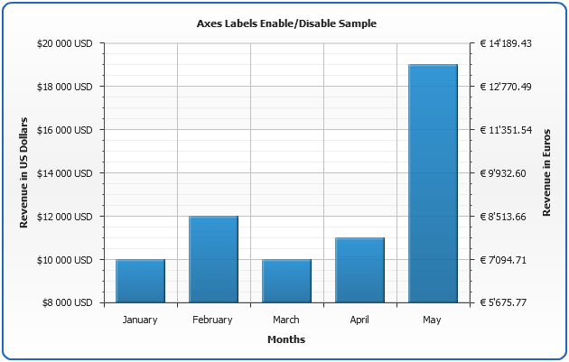 Note: "Euro" Y-Axis is recalculated according to "imaginable" exchange rate - USD/EUR : 1.4095/1 using scaling feature of AnyChart number formatting, read more about it in Number Formatting - Values Scaling Section