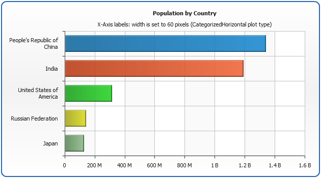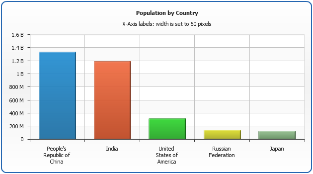 The following example demonstrates standard behavior of the X-Axis labels. As you can see long labels cause component to skip several labels in order to prevent overlapping: