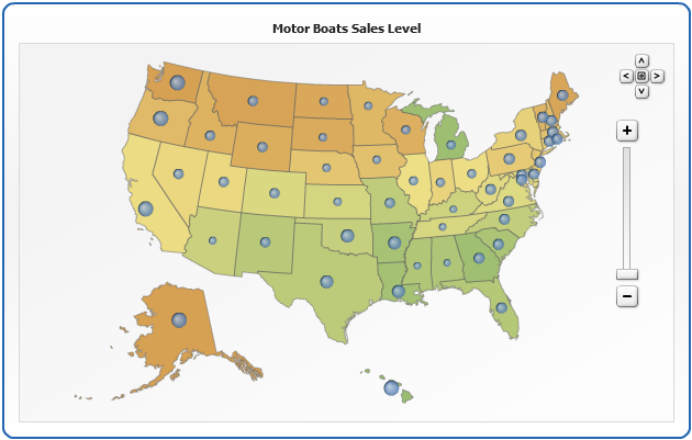 You can add zoom functionality for your map simply adding zoom and navigation controls to your maps, it is very useful when your map contains a lot of point or bubbles that are placed very close to each other or you need to be able to look at small regions.