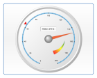 Circular (Angular) Gauges, Semi-Circular Gauges, Radial Gauges. With Color-Ranges, Multiple-Axes, Custom Markers and Labels.