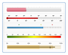 Horizontal Linear Gauges, Horizontal Bullet-Graphs. With Color-Ranges, Multiple-Axes, Custom Markers and Labels.