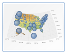Displaying tree-structured data and two-dimensional maps, with drill-down support, color coding, interactive legend and attribute based thresholding.