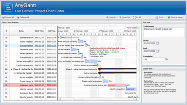 Sample shows how AnyGantt can be used to show and edit Activity-Oriented Chart build from
