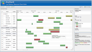 Sample shows how AnyGantt can be used to visualize Resource-Based Gantt chart - Schedule.