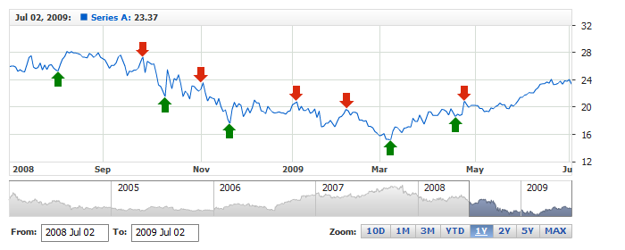 And in this sample you see how arrows can be used to show Buy/Sell signals: