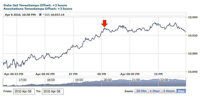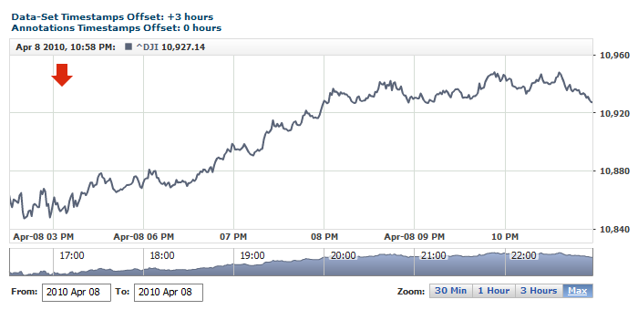Annotation can be added to a chart using XML/JSON config and when any annotation is added to the plot you need to set timestamps, which define where they should be placed to. And, as well as you may need to set time offset for data or event markers, you may need time offset for annotations.