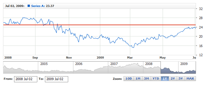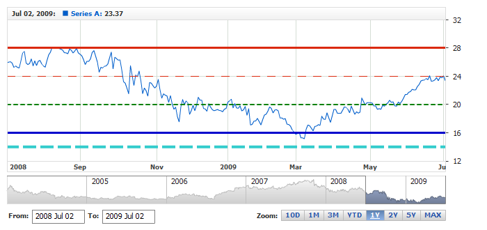 Live sample below shows a chart with this sample basic Horizontal Line annotation: