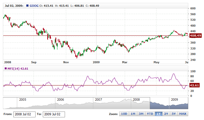 And a sample with line axis markers bound to Money Flow Index(MFI) technical indicator series: