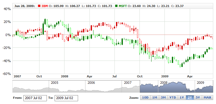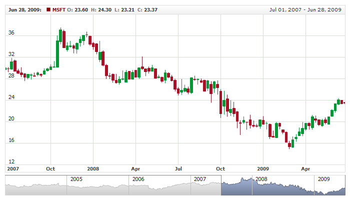 Live sample below has two series of Candlestick type. All common settings defined in <series_settings_defaults/> node :