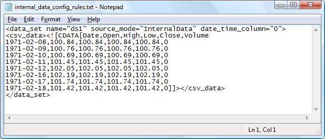 The timestamp format string is set in the <format> node. This format string uses special tokens. The sample XML below demonstrates it. For better understanding, we will use an internal CSV table: