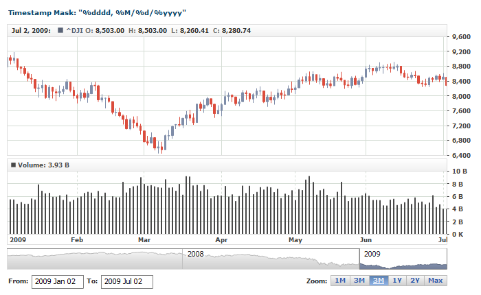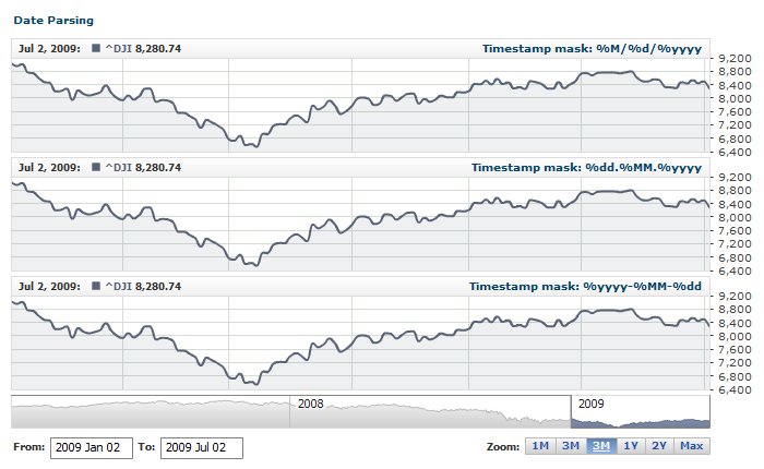 To help AnyChart Stock properly interpret this timestamp, we will specify the following input format string: "%yyyy-%MM-%dd", where the tokens have the following meanings: