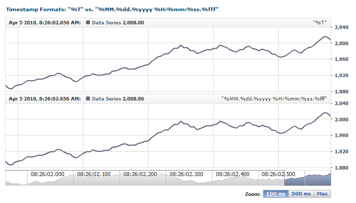 - %T token - the most flexible and universal format, and, moreover that's the Flash Player's native timestamp format, so - it is parsed with the best efficiency. If it doesn't add much string length redundancy, use it to speed everything up.