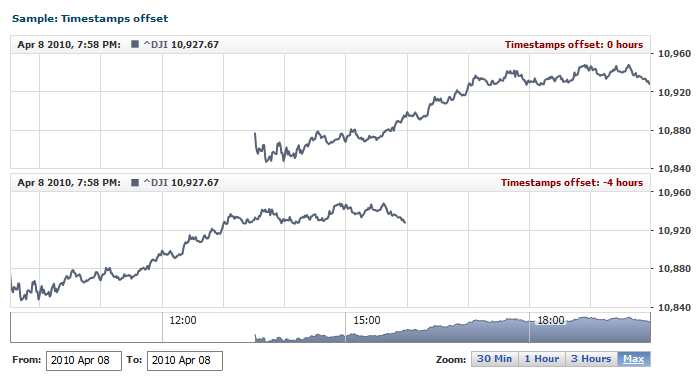 The live sample below demonstrates how several data sets can use the same CSV table for different charts. One chart could show data according to the original timestamps, and the other one - with the -4.0 hours (four hours back) offset:
