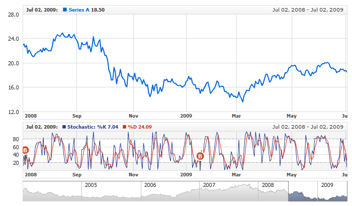 5. Example - Binding a group of markers to a series visualizing one of the parameters of the Stochastic Oscillator technical indicator: