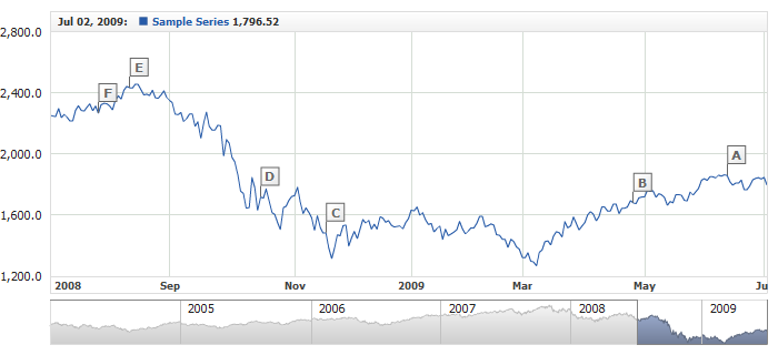 And here is a live sample with Candlestick series and two groups of event markers: bound to "High" field and "Low" field, note how direction attribute can make them look even better.